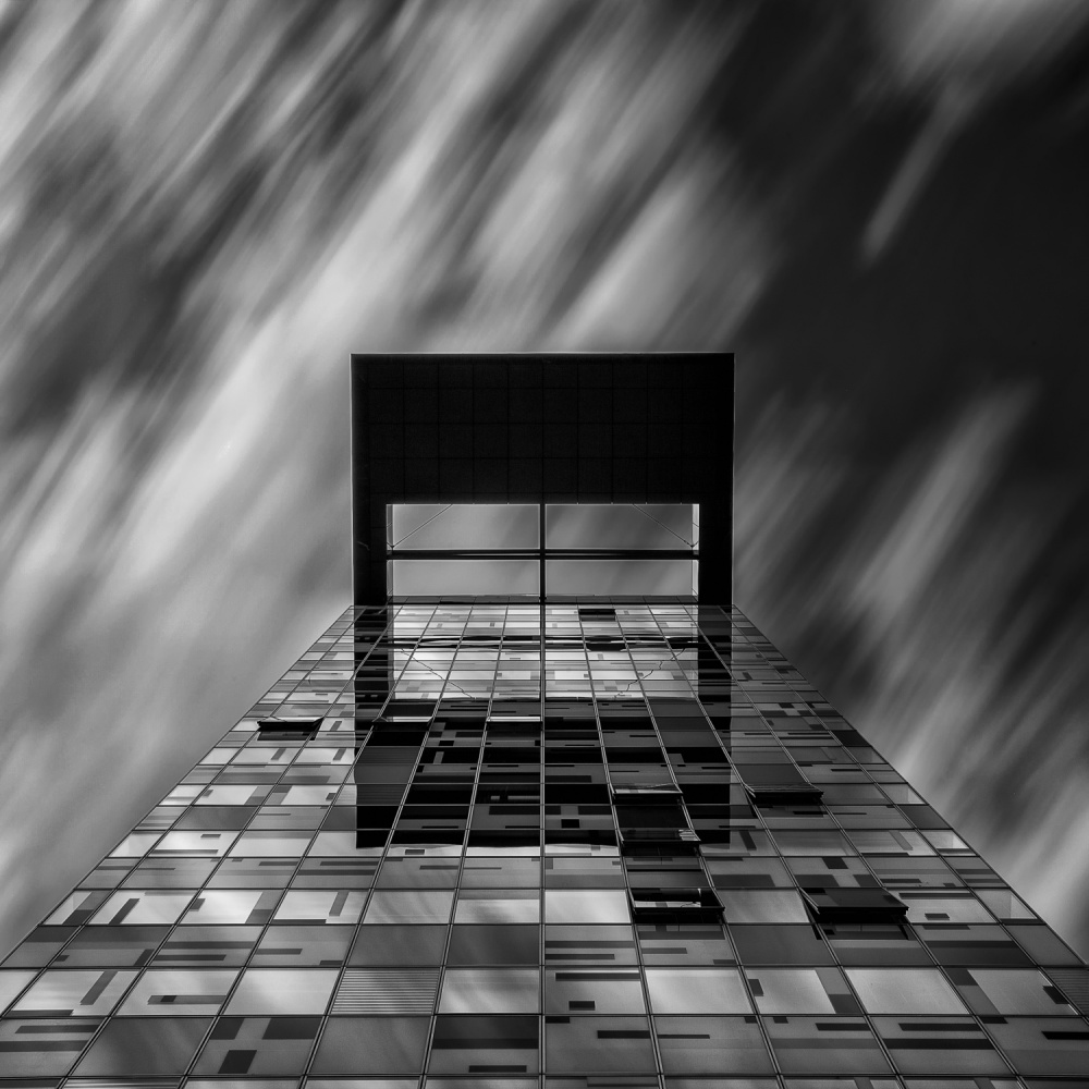 Like Jeroen van der Wiel, Stefan took his photo on a sunny day with lots of clouds in the sky. The sky is a substantial part of the image and the flow of the smoothed out clouds give it a vivid, if not rather dramatic look and feel, possibly indicating it was windy that day. It is a nice solution to the sky problem. But there is a trap. It is hidden in the reflections on the facade. When looking closely, you can see that the flow of clouds heads into another direction than the flow in the sky. In the sky they head upwards, in the reflections they point downwards and I found this visually irritating.