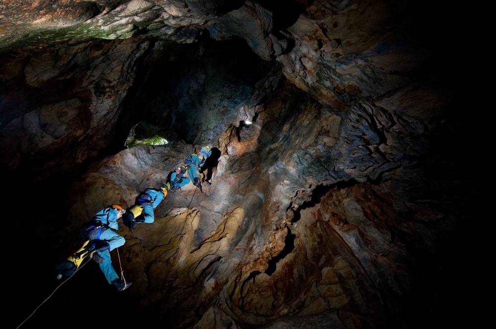 This citation might sound contradictory for a team sport, but it’s very true for speleology. The speleologist is alone when he climbs up his cord, he is alone in the narrow passages where he has the feeling of being trapped and he is alone when he is faced with fatigue. He is alone but he has a team around him on which he can count.
