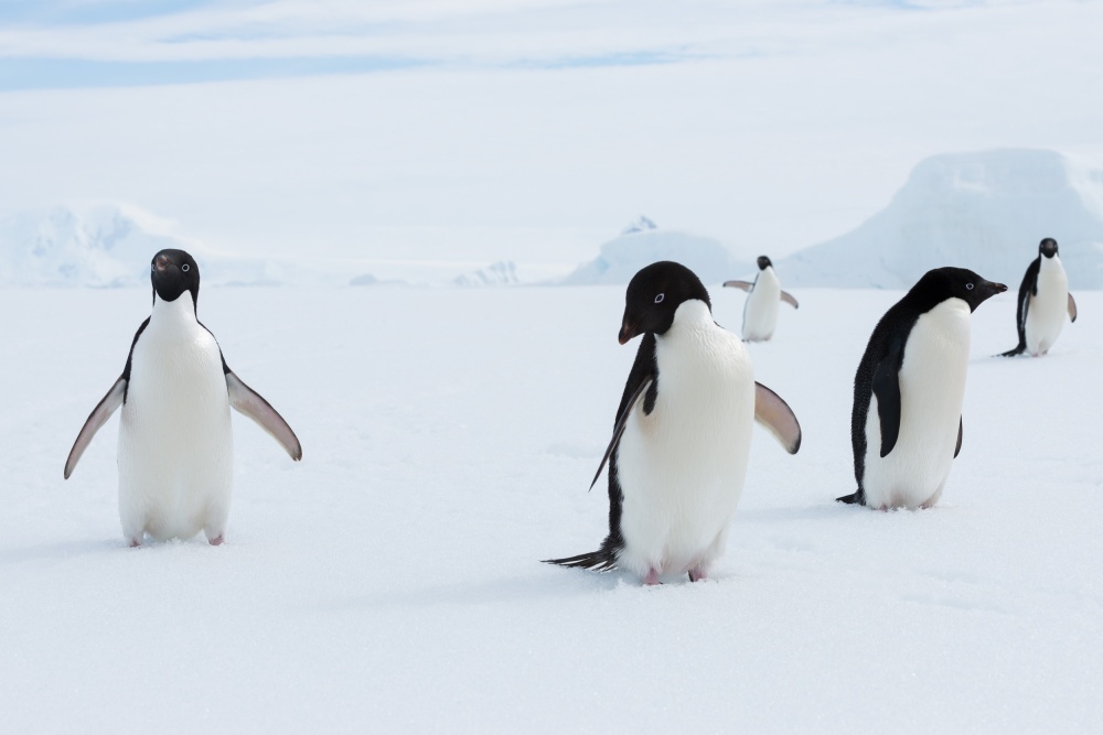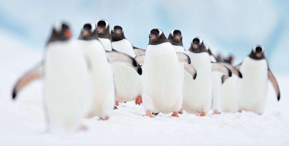 Penguins are very social birds. Many species feed, swim and nest in groups. During the breeding season, some species form large groups, or “rookeries”, that include thousands of penguins. Each penguin has a distinct call, allowing individuals to find their mate and their chicks even in large groups.