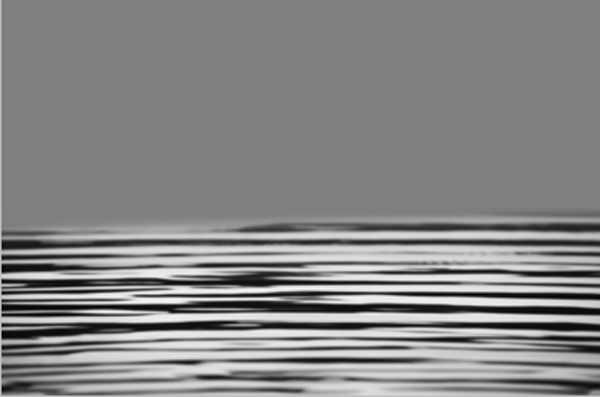For example black means shift maximum to the right, white a maximum amount to the left, 50% grey means don’t shift. So a pattern of gradients, like blurred lines, create the wavy structure water surfaces have when you photograph them from deep down. If contrasts are sharp, the new structure becomes sharp, so I did a lot of attempts that created not exactly what I wanted, but funny things. I decided to do a very simple thing, drive to a lake close by, a one that hasn’t much trees around. Wait for twilight and you can use its natural structure as a mapping.