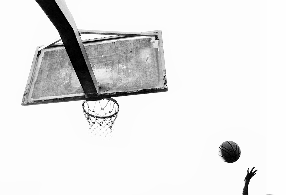To start with some easy examples from the 1x archive, the idea of story in this basketball picture is very obvious and makes it more powerful by the simplicity of the shapes and reversion to black and white.