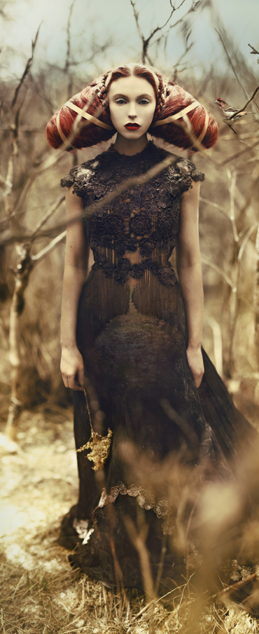 I guess my real penchant in life has always been how close I am to nature. I have found I always wanted to be right out in the thick of it, usually alone, quietly observing everything unfold within it. I grew up on really big farms, always falling asleep to aspens flapping in the wind, or a storm rolling onto our yard from the surrounding fields. The great plains were a magical place to grow up. I would say my style developed before I had equipment, when I was out in the fields and woods finding little treasures and pulling up pieces of grass. When I finally found photography,  it was only natural to bring my ideas out into a natural environment, capturing some of that timeless unfolding as the backdrop to my stories. As for the aesthetic side, especially in regards to my sets, my mother was a full time antiques dealer. I grew up hearing the auctioneers mallet and playing in boxes of antiques that lined our garage and front room. She kept old original prints of Maxfield Parrish on the walls. There were old (Brian) Froud books lining the side tables. I had a perfect background to dream up a fantasy land, where a windy farm was always around me and old books always near my hands. As I got older I found the work of Arthur Rackham and John William Waterhouse and through experimentation and a lot of fun, playing and tinkering about, the rest is history.