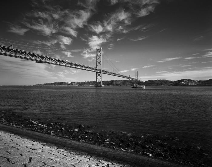 Now for the final test, the big first sheet shooting. One film holder, two sheets of Foma 100. Framing and measuring light only. No focusing need, right? And here they are, made around Lisbon, as usual, developed in Tanol, scanned for our screen viewing pleasure.