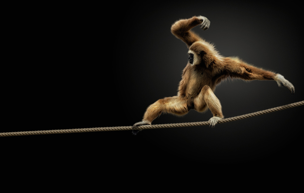So I chose to make the portraits from a feasible (and safe) position and recreate the studio in the edition phase.  I started experimenting, and I realized that in the end the result was better, because the animal behaved naturally when not forced to be in a studio. Studio work often frightens or stresses the animal, and the result is a portrait of a harassed creature.  So what was initially a constraint ended up becoming an advantage. The animal is often unaware that he's being photographed, or if it is, eye contact is made, but each one from his  own safe space. And I often try to get that eye contact, because that is where your consciousness is best perceived and a fascinating interaction develops. I then came to the conclusion that it is not worth forcing the animal to pose in a photographic studio just to get a dark background. If this can be done in post-production, there is no need to disturb it.