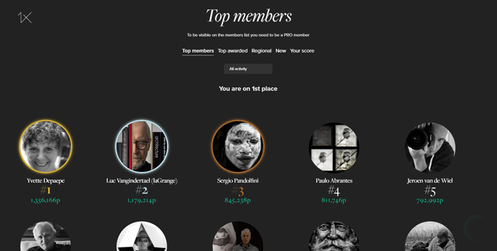 The top lists are now ordered according to the new points system on 1x.com/members