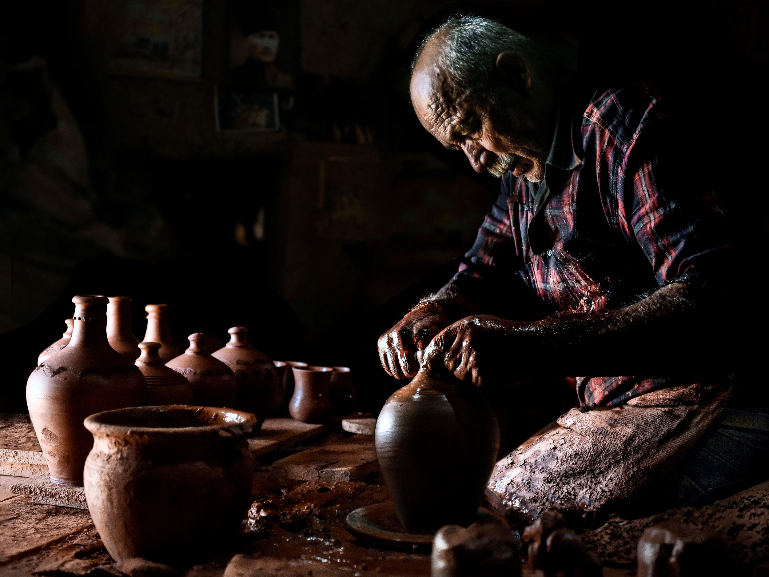 In an ancient and typical workshop, almost looking like a small cave, I was able to witness the making of ceramics by this craftman.