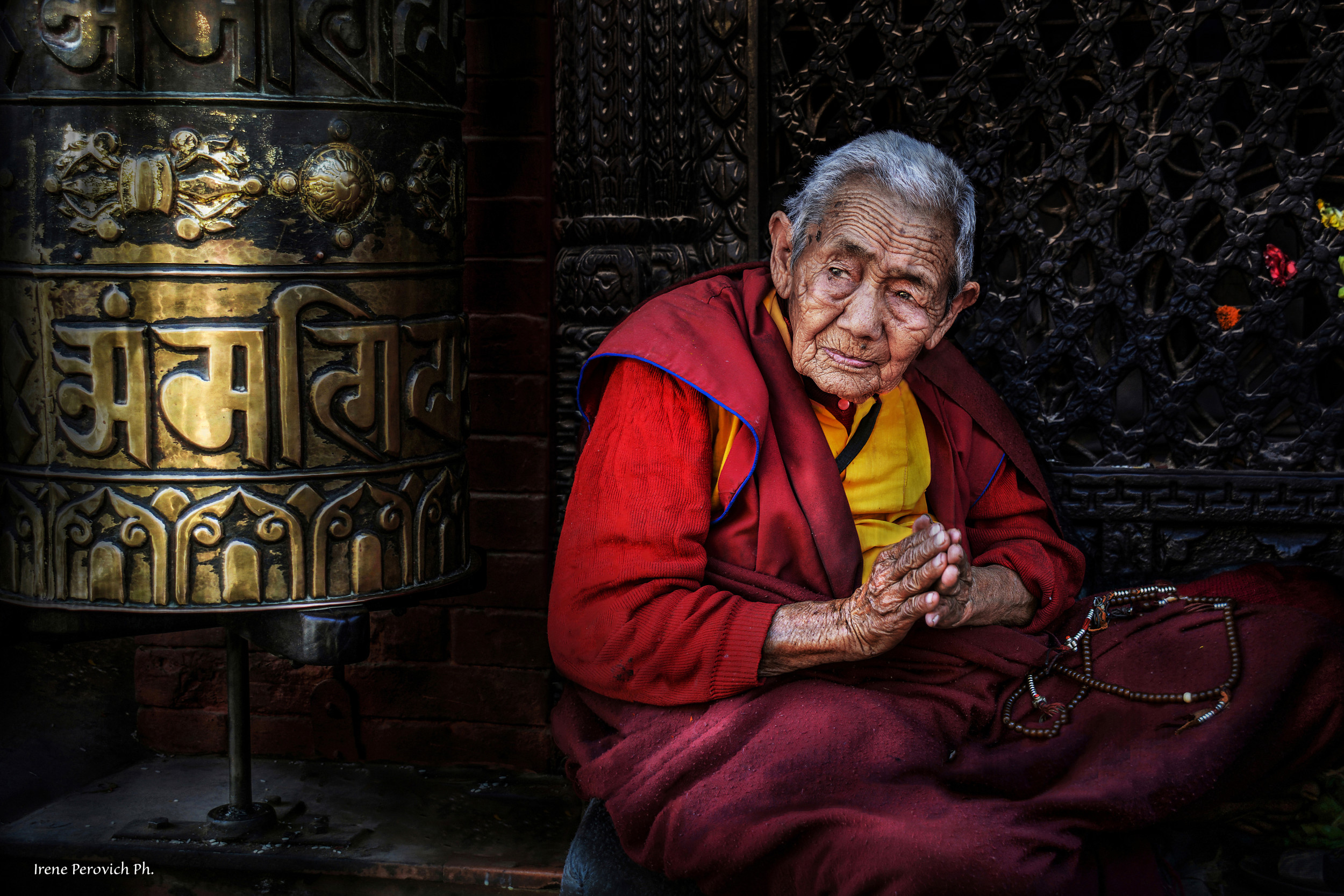 This little woman is almost an institution for the people of Kathmandu and also for the photographers and tourists to visit this pelgrimage.  She is always and invariably there, immersed in prayers, in front of the Stupa's entrance.  It is one of the largest and most significant Buddhist monuments in the world.