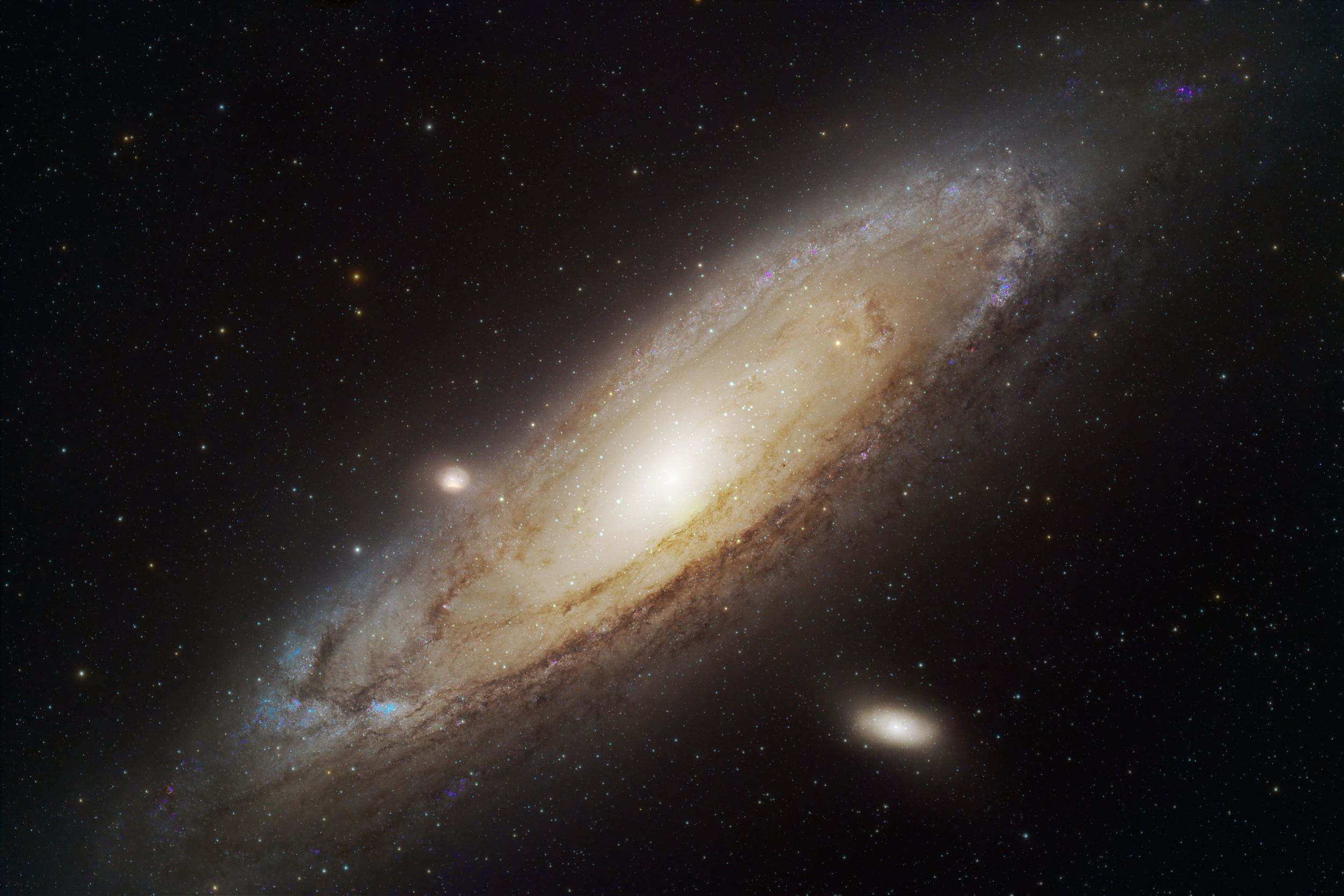This photo has a total of almost 68 hours of light shots (more than 600 photos were taken, of which I discarded several for imperfections (passing satellites, planes). I kept 580 photos of 420sec (7 minutes). At more than 12 hours of calibration shots, 100 420sec Darks shots (these are black photos made with the lid on), 100 Bias shots, (black shots made with the lid on and at a maximum shutter speed of the camera, also made to eliminate other image noise generated by sensors) and 100 Flats jacks (photos made to a white light source that are used to remove vignetting from lenses and dust specks from optics). I started taking pictures on October 15, 2021, and between clouds and moon phases I finished on January 8, 2022.