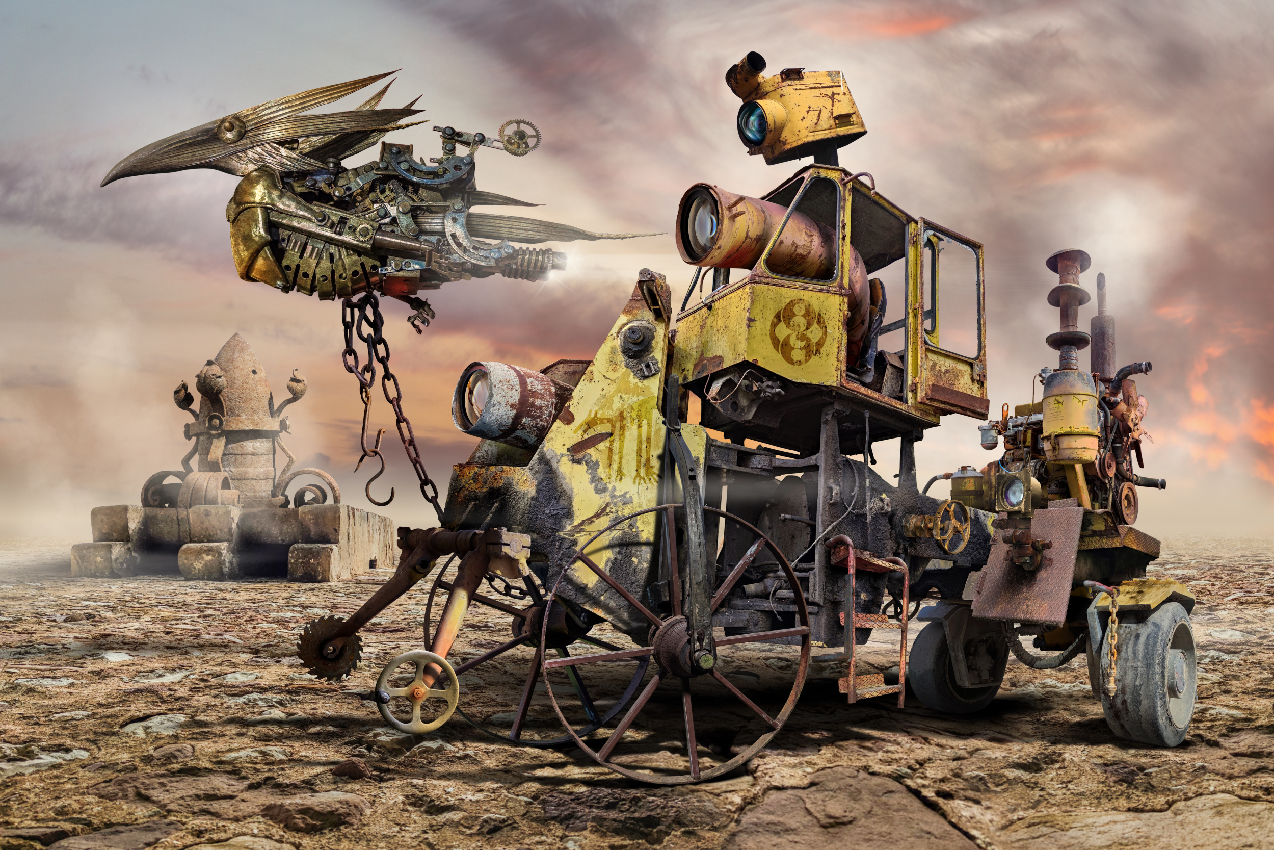 Your outstanding creative works are mostly placing in surrealistic sceneries some out of this world symbiotic beings and machines. Can you please tell us something more about your workflow? How much effort do you put in the processing stage?