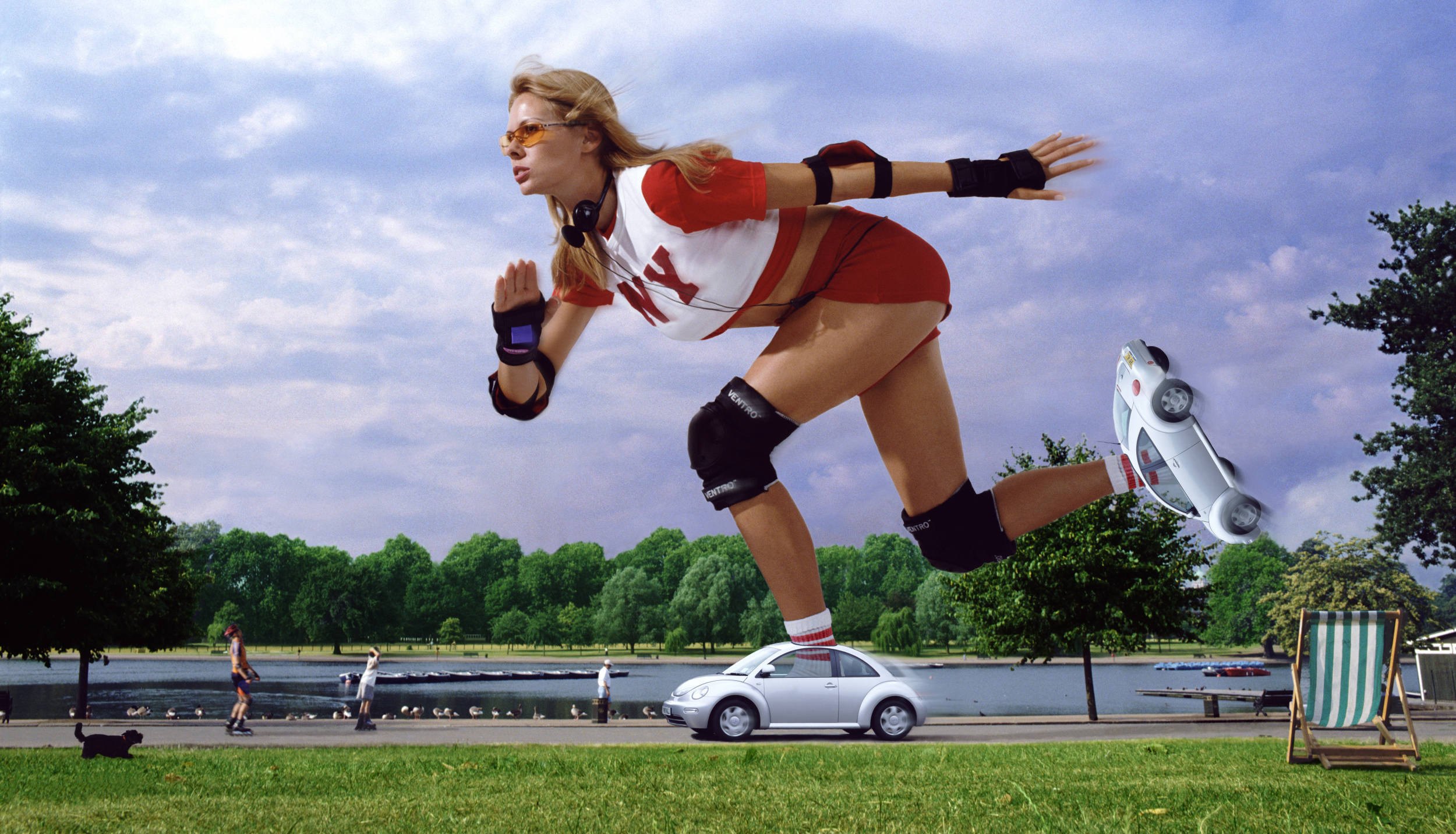 In planning “The Skater” I was careful to arrange the position of the model and her feet so the cars could be shot sitting on the ground without the necessity for complicated heavy duty rigging.