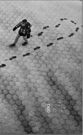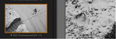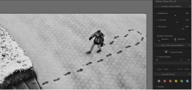 5) With the use of Control points, the bottom-left part of the image was corrected by decreasing Brightness to –22% and increasing Structure to 11%. Also the Contrast was increased to accentuate the darker parts of the snow. The same approach was applied to the upper edge of the photo. The last step in Silver Efex Pro 2 was to apply a subtle vignette to slightly darken all of the edges, drawing more attention to the person.