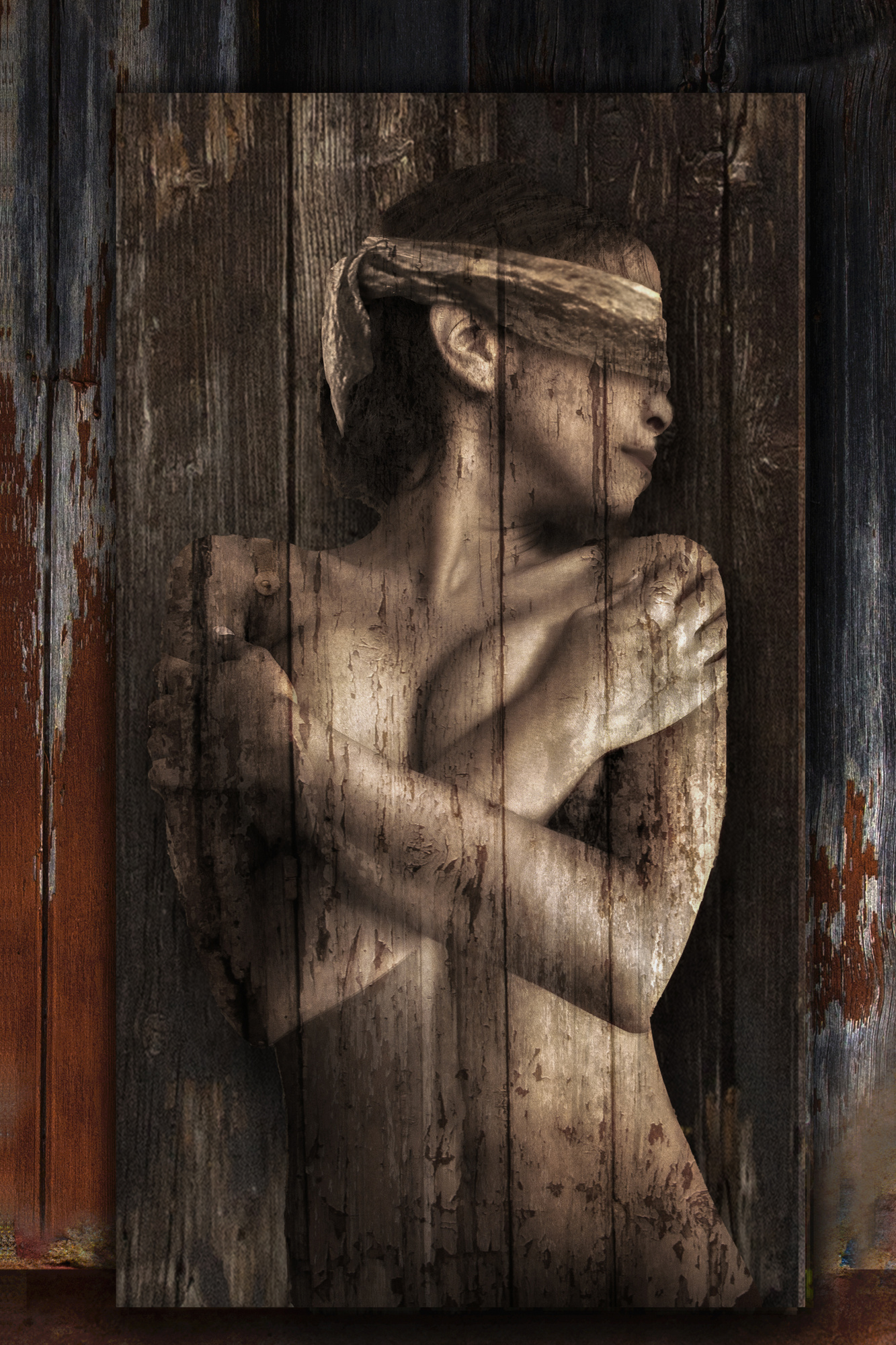 'nude on rusty metal'