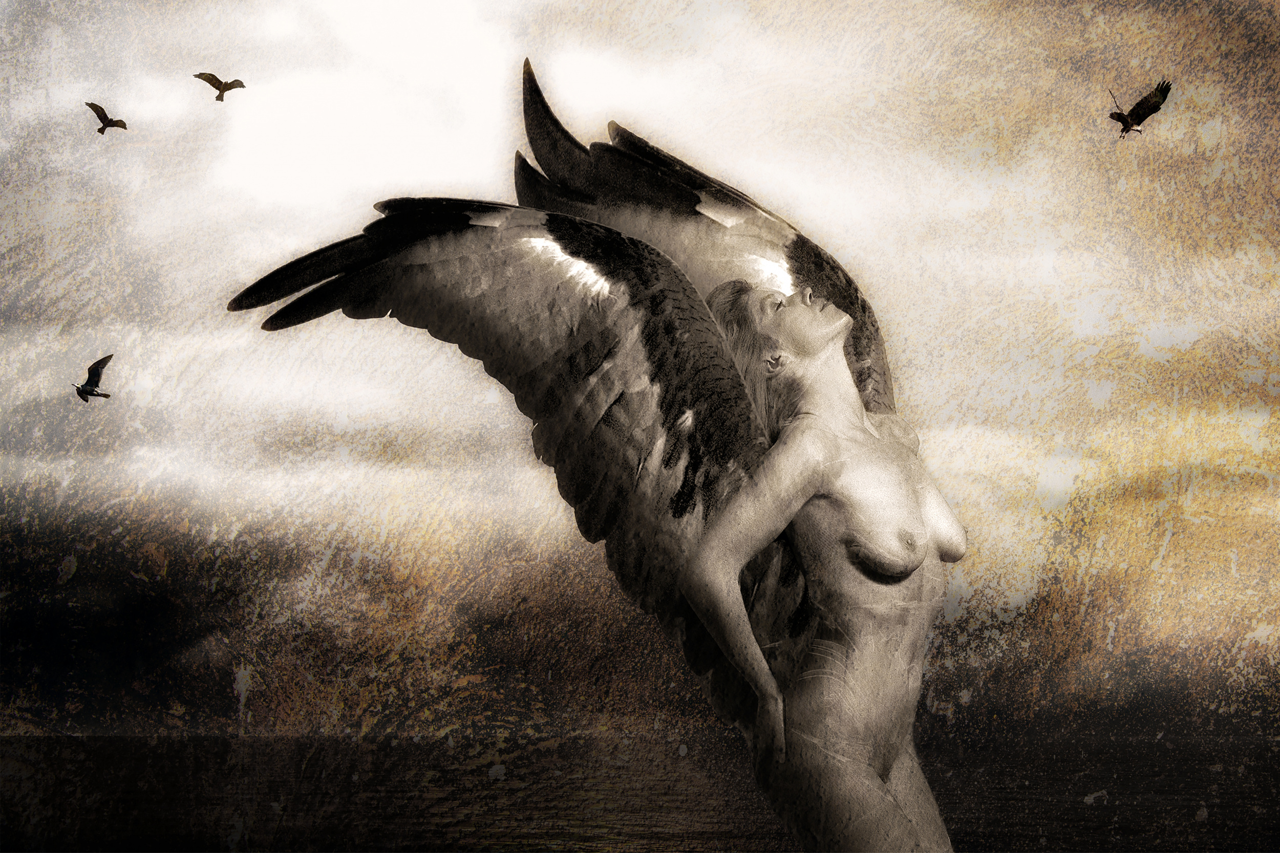 At some point, he began to mix images. He used photos that he had taken in the past, adding structures, textures and all kinds of materials, thinking that he could reduce the nudity aspect in this way. This idea was a success because the results looked like a kind of art and not ordinary nude photographs.