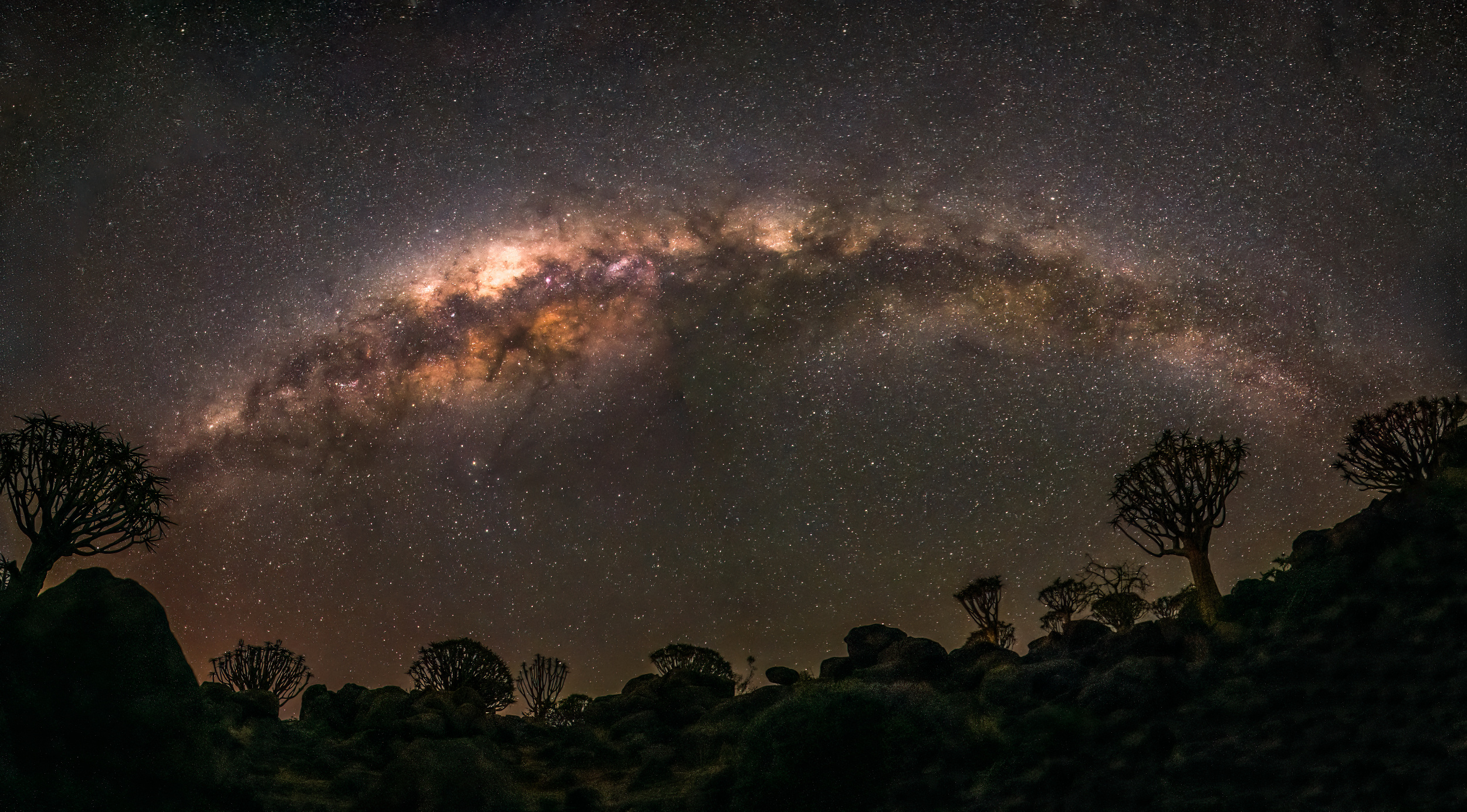 In Namibia, when you stand in the quiver tree forest, boulder forest or the unique red sand dunes under million stars and Milky Way in clear night sky in totally silence, it is impossible for you not to wonder, to think and feel. There is no word I could fully describe what I saw and how I felt. I felt totally lost in this wonderful nature environment in time and space.
